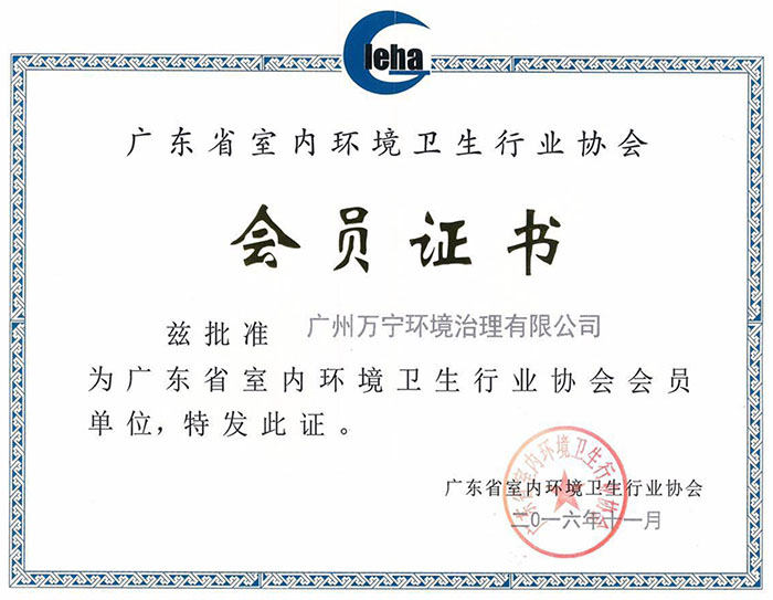 • 廣東省室內環境衛生協會證書